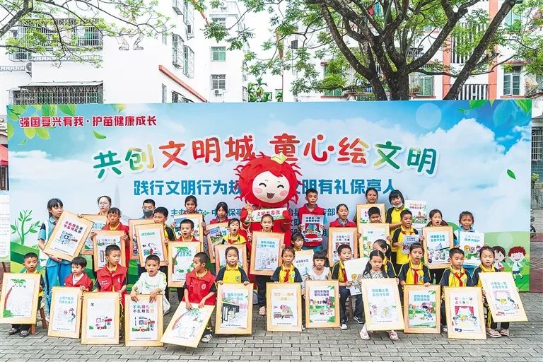 小小一支画笔,,,,,,,在撒播着都会文明新风方面施展着起劲作用。。。。。。2023年以来,,,,,,,保亭还开展了“童心绘文明”主题进社区运动。。。。。。学生及自愿者纷纷走进校园周边小区,,,,,,,向住户、过往市民开展文明习惯养成、不文明行为整治等宣传。。。。。。