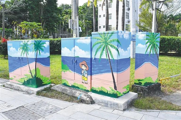 “小景观”推动“大文明”。。。。。。在保亭县文明办的组织下,,,,,,,自愿者凭证光交箱和配电箱所在位置、巨细、形状等因素,,,,,,,差别化付与“青山”“绿水”等生态元素,,,,,,,同时融入“动物”“人物”等元素,,,,,,,让光交箱和配电箱与都会景观融为一体、相得益彰,,,,,,,其中尚有不少体现黎族苗族风情,,,,,,,雨林景物等极具保亭特色的作品。。。。。。