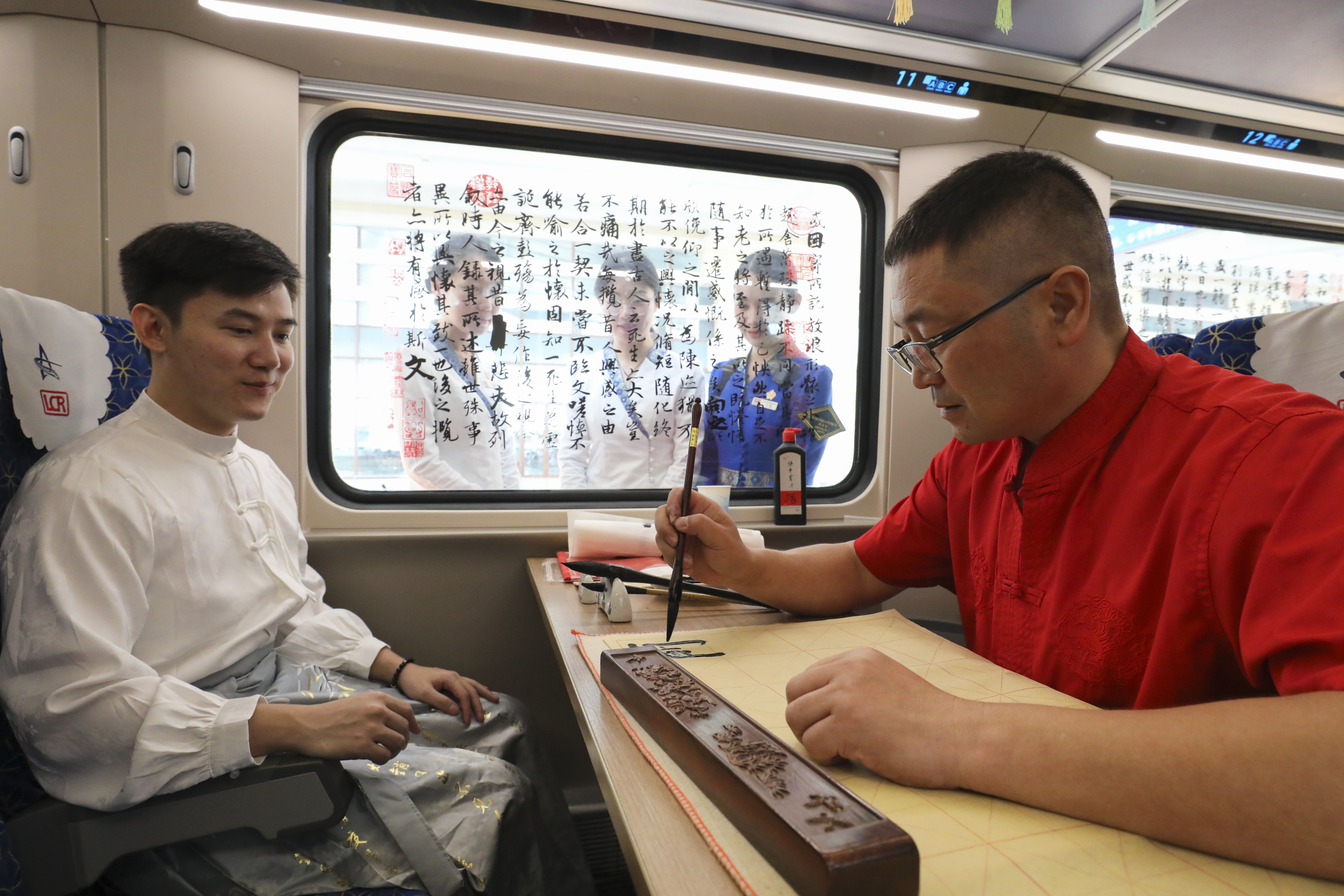 ÖÐÀÏÌú·D88´Î¹ú¼ÊÓοÍÁгµ5ºÅ³µÏá±»×°°çһУ¬£¬£¬£¬£¬£¬£¬£¬Á½·ù25Ã׳¤µÄ¡¶À¼Í¤¼¯Ðò¡·Êé·¨³¤¾í¸ß¹ÒÔÚ³µÏá¶¥²¿£¬£¬£¬£¬£¬£¬£¬£¬¹ÅÉ«¹ÅÏãµÄÖйúÊé·¨×÷Æ·¹Ò»ÔÚ³µÏáÄÚËæ´¦¿É¼û¡£¡£¡£¡£¡£¡£¡£¡£ÂÿÍÔÚ×ùλÉÏרעµØÓÃë±ÊÒ»±ÊÒ»»Ð´ÏÂÖйúºº×Ö£¬£¬£¬£¬£¬£¬£¬£¬Å¨Å¨µÄÎÄ»¯ÆøÏ¢ÃÖÂþÔÚ³µÏáµÄÿ¸ö½ÇÂä¡¡