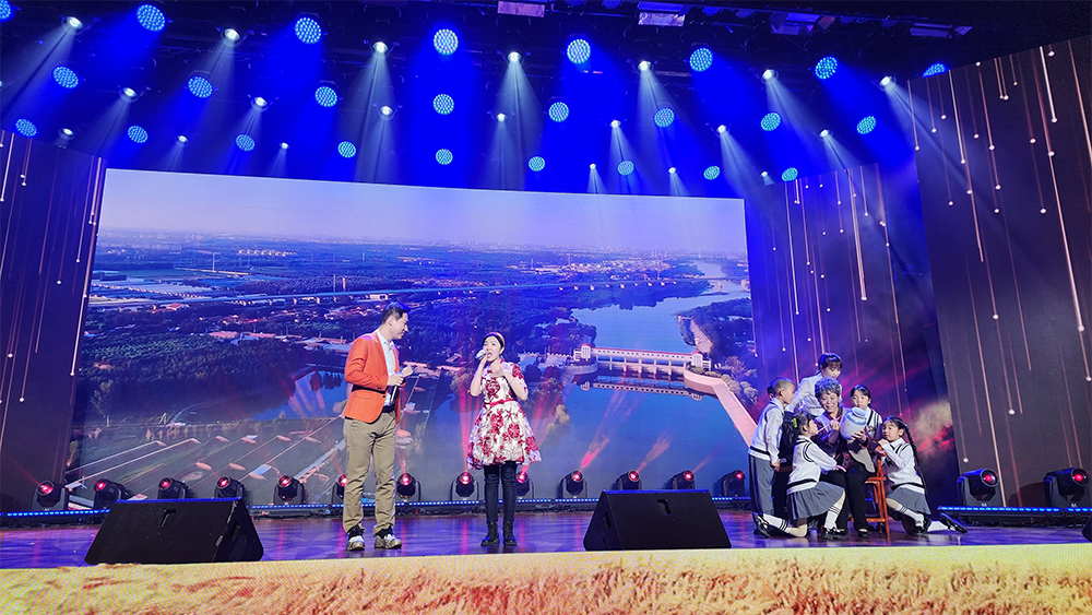 白滩寺村村歌《子牙河畔家乡美》在天下村歌大赛中的演出剧照。。。。。。西青区文明办供图