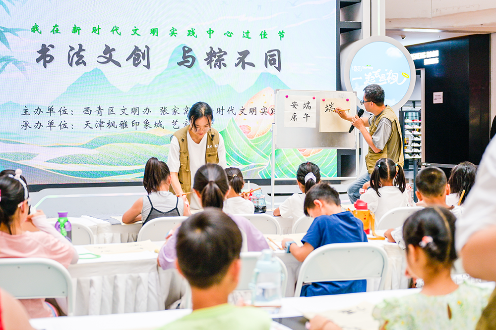 天津市西青区张家窝镇开展端午节书法运动。。。。。。西青区文明办供图