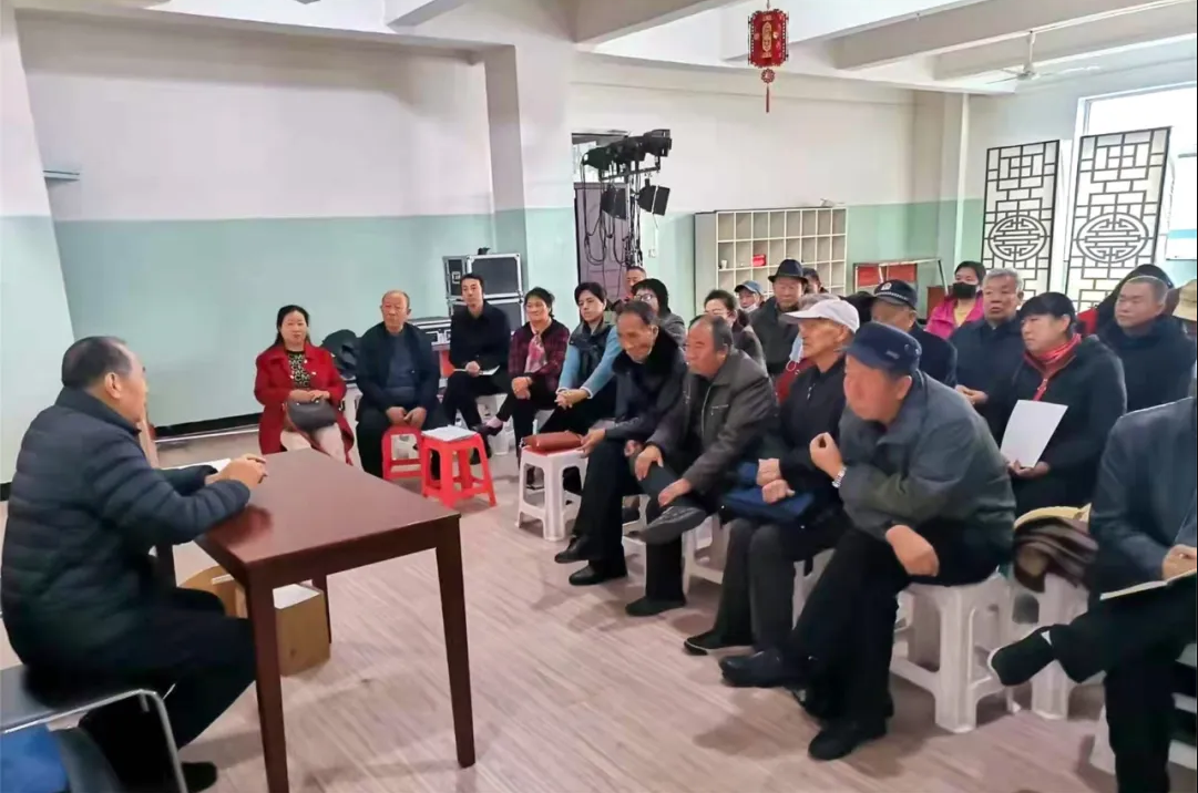 原平农民散曲社散曲创作向导课堂。。。。。原平农民散曲社以精神文明实践为宗旨,,,,,以文化效劳公共为中心举行散曲创作,,,,,通过贴近群众、贴近生涯的散曲艺术形式,,,,,把新头脑、新民俗播种到群众心坎上(资料图)。。。。。(原平市文明办供图)