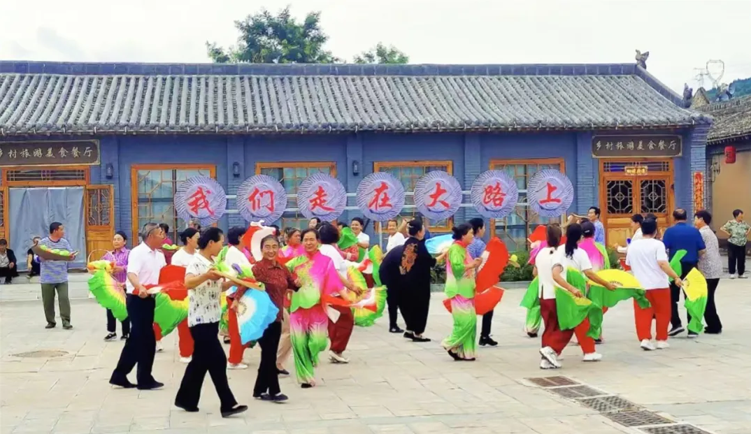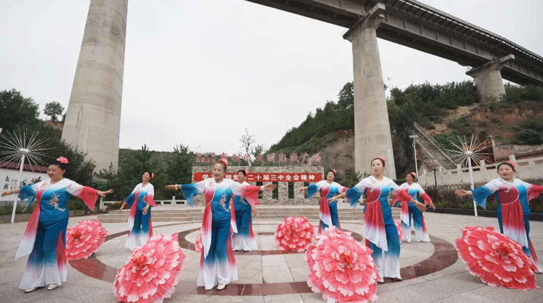 8月8日,,,,,村民们在静乐县鹅城镇杨家崖村新时代文明实践广场演出节目。。。。。新华网发(忻州广播电视台 白灏 摄)