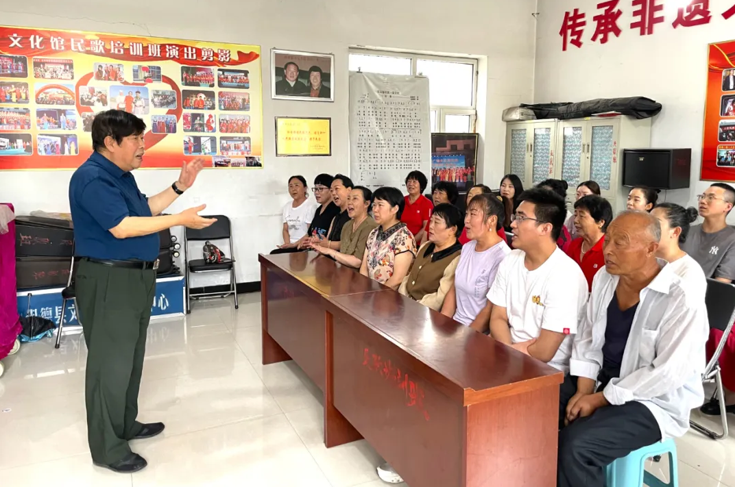 8月9日,,,,,在保德县文化馆,,,,,山西省级非物质文化遗产项目(保德民歌)代表性传承人、“黄河之滨民歌王”杨仲青现场教授保德民赞美法。。。。。新华网 任钰 摄